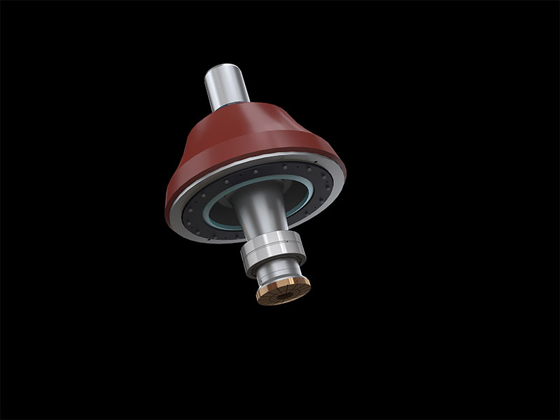 RC系列單缸液壓圓錐式破碎機工作過程中,電動機通過傳動裝置帶動偏心套旋轉,動錐在偏心軸套的迫動下做旋轉擺動,動錐靠近定錐的區(qū)段即成為破碎腔,物料受到動錐和定錐的多次擠壓和撞擊而破碎。動錐離開該區(qū)段時,該處已破碎至要求粒度的物料在自身重力作用下下落,從錐底排出。排料口的大小需要靠底部一個液壓缸的升降來調節(jié)。